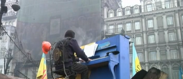 UKRAINE : Un pianiste fait un concert sur les barricades de Kiev