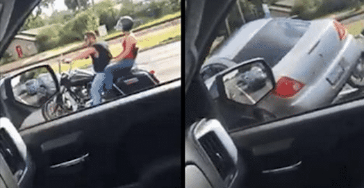 Un automobiliste fou renverse et roule sur une moto en plein embouteillage… (vidéo)