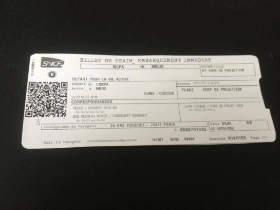 Flash code sur le CV? Emoticones? CV façon réseau social? CV version graphiste pro? CV façon jesuisunmecimaginatif ? Cette fille, Julie Rivoire, vous a devancé… Voulant être chez de projet/CM dans une agence, elle envoie ce CV façon billet de train et offre une originalité incroyable aux RH et une remarquable touche de créativité ! On adore !