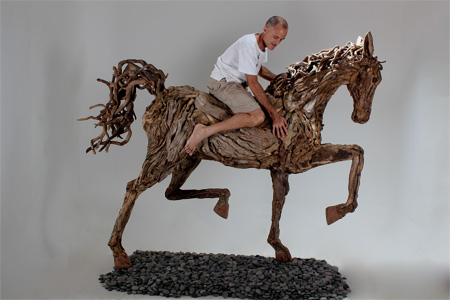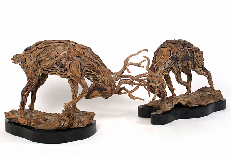 Pour la fabrication de ses sculptures, James utilise du bois flotté, bois utilisé depuis longtemps aux États-Unis et en Europe pour créer des meubles rustiques.