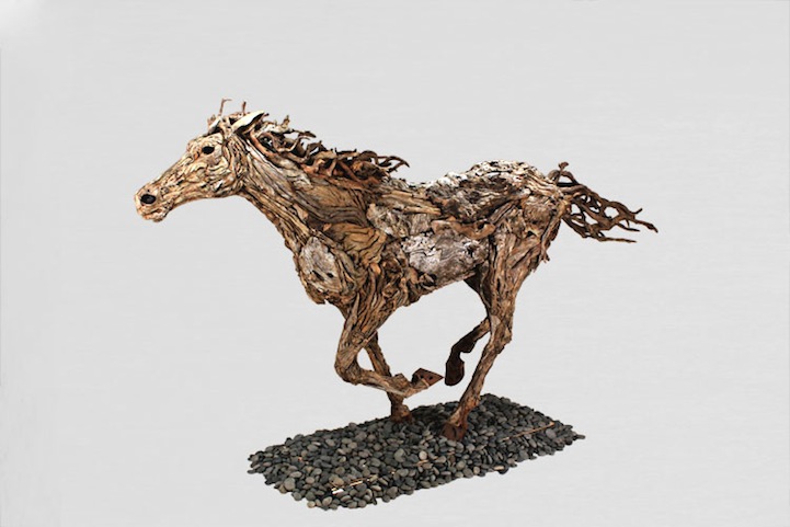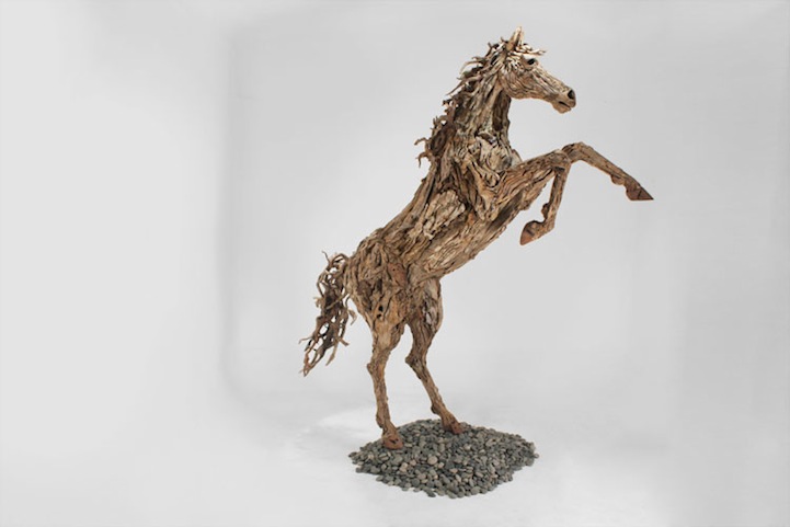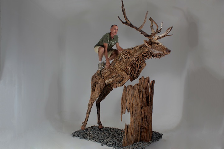 Le britannique James Doran-Webb utilise du bois flotté et des matériaux recyclés pour sculpter des animaux grandeur nature !