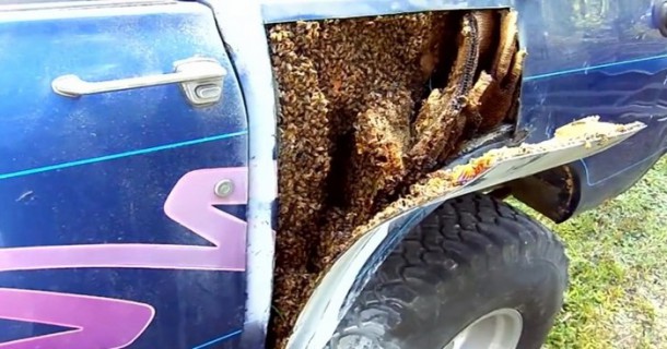 Cependant, la panne que vous allez voir dans la vidéo n’a rien à voir avec le moteur de la voiture mais avec un fait bien plus naturel. La surprise est en effet au rendez vous lorsque l’homme découvre une véritable ruche d’abeilles nichée sous la roue, La quantité d’insectes présente sous la carrosserie est si impressionnante qu’il faudra certainement un apiculteur et non un garagiste pour pouvoir résoudre son problème.