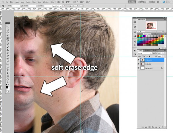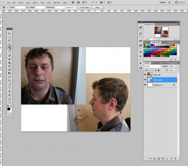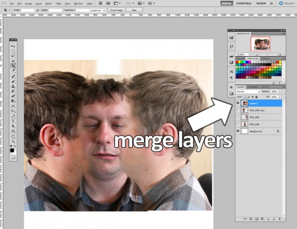 2. Dupliquez et inversez la photo de vous de profil, et placez la duplication de l’autre côté de votre tête.