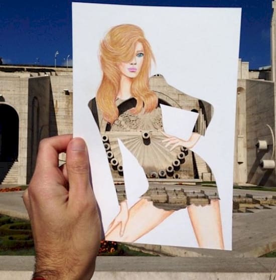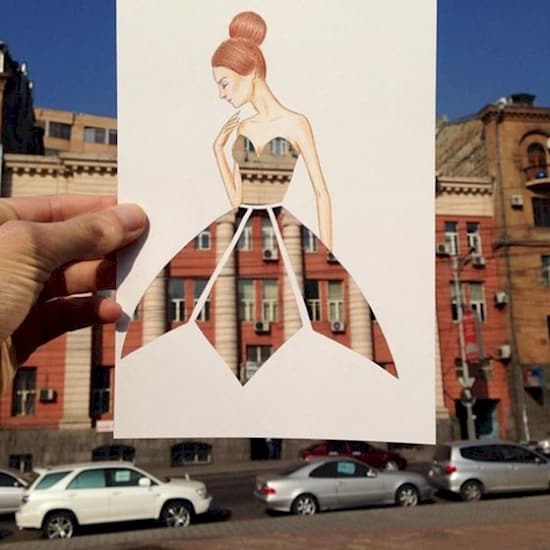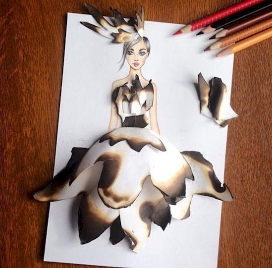 Edgar Artis est un artiste arménien qui aime jouer avec les textures et les formes. En sculptant, découpant, mettant en relief, il arrive à reproduire de magnifiques croquis de mode très au point en utilisant des objets du quotidien voire même, l’environnement qui l’entoure.