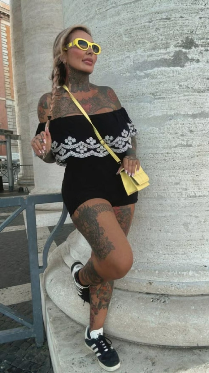 La richesse culturelle du Vatican attire des millions de personnes chaque année. Sabrina faisait partie des touristes curieux de découvrir ce sanctuaire historique. La jeune tatoueuse et DJ de 35 ans a porté un combi-short de couleur noire puisqu’il faisait très chaud. À son avis, sa tenue était « appropriée » à sa visite de la basilique Saint-Pierre.