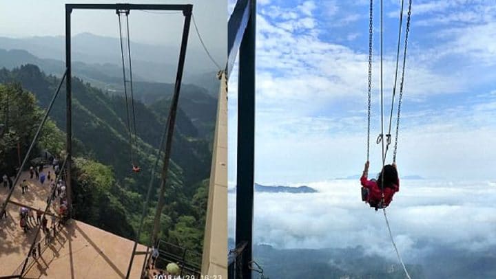 Vertige assuré : Une balançoire géante installée au bord d’un précipice de 300 mètres de hauteur