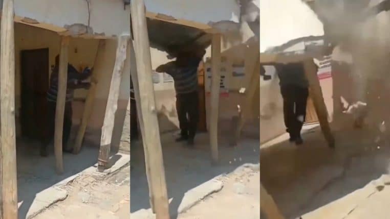 Il veut simplement casser une poutre en bois… Et détruit sa maison ! (VIDEO)