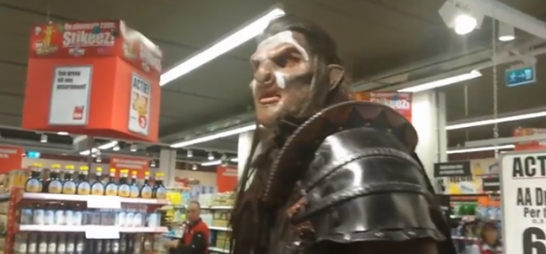 [VIDEO] Seigneur des Anneaux: un Uruk-Hai fait ses emplettes au supermarché !!