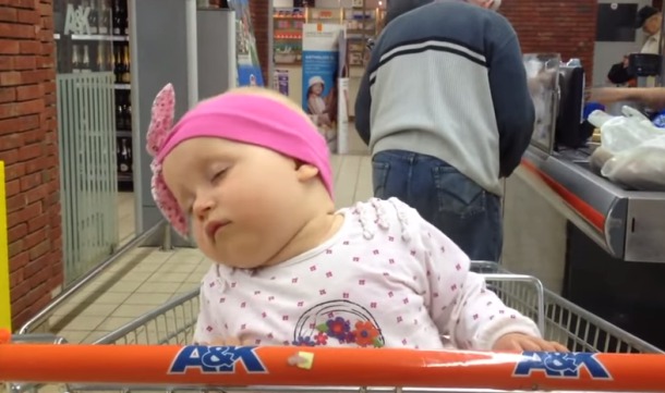 Je ne sais pas vous, mais moi je me souviens très bien de ce moment pas franchement agréable lorsque je faisais les courses avec mes parents dans le caddie et que je n’avais qu’une seule envie : m’endormir comme une loque ! Cette petite fille dans son caddie n’a pas pu résister à l’appel des bras de Morphée… ses parents ont immortalisé la scène qui vaut le coup d’oeil ! Toute choupinette…