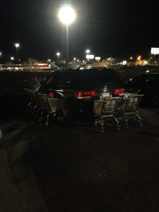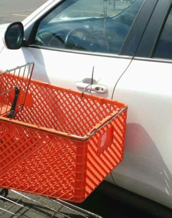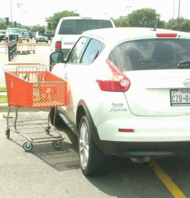 N°5 – Le caddie attaché à la voiture, pas mal…