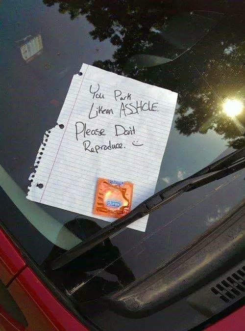 « Tu te gares vraiment comme un con****. Merci de ne pas te reproduire«