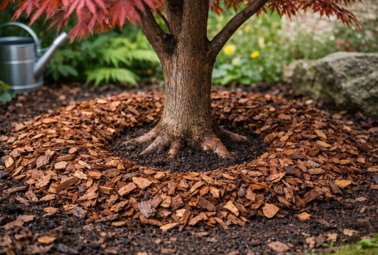 Autre avantage, souvent sous-estimé : un bon paillage limite la concurrence. Moins d’herbes au pied signifie moins de “pompage” d’eau et de nutriments au détriment de l’arbre. Avec un Acer palmatum qui stagnait, cette simple baisse de compétition peut se traduire, quelques semaines plus tard, par des pousses plus longues et un feuillage plus dense.