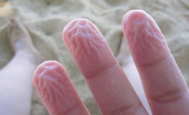 À la plage, dans une piscine ou dans votre bain, vous avez certainement déjà remarqué que des rides apparaissent sur la peau de vos doigts et de vos orteils. Vous avez alors soudain la sensation d’avoir vieilli en l’espace de quelques minutes. Savez-vous pourquoi nous avons la peau des doigts fripée quand on reste dans l’eau ?