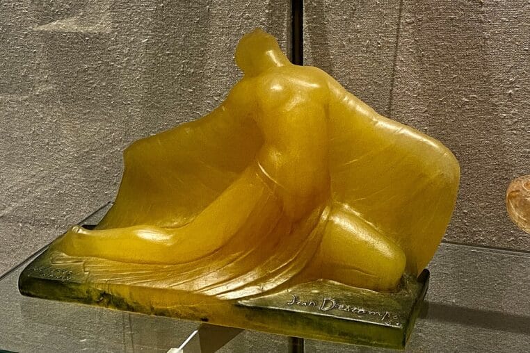 Ce choix n’est pas anodin. La pâte de verre donne un rendu particulier, souvent plus texturé, avec des effets d’opacité et de matière. Contrairement à une bouteille standard soufflée en série, on est ici sur un objet où la main, le temps et l’essai-erreur deviennent partie intégrante de la valeur.