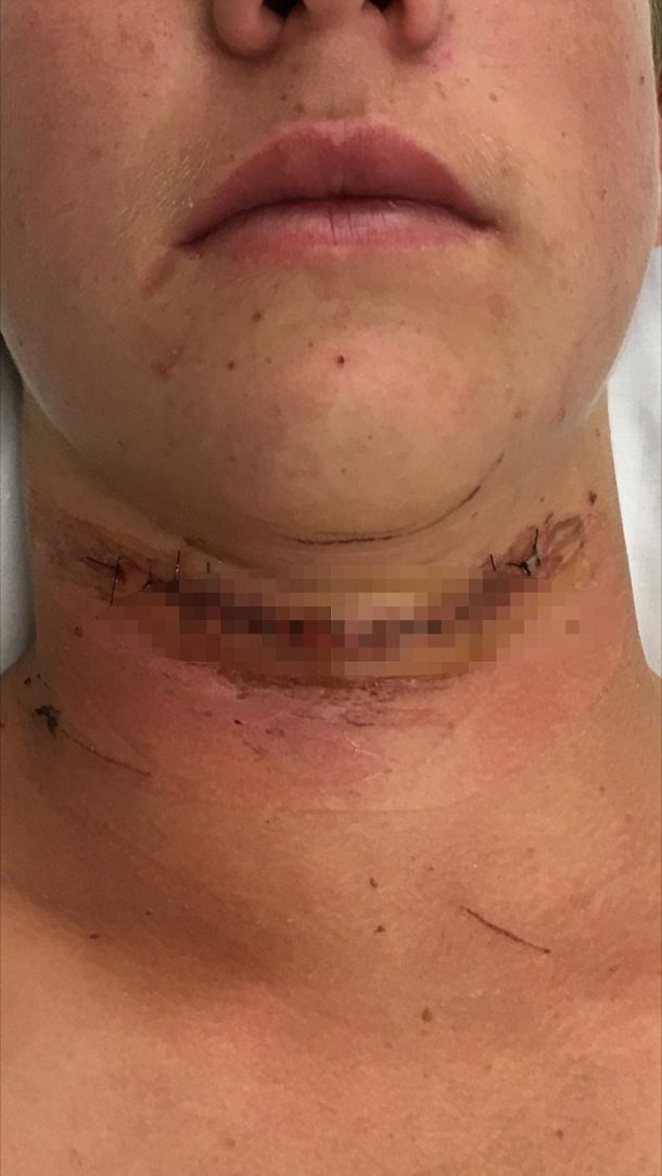 En tombant, Bradely a terminé sa route dans une clôture barbelée. Résultat, le tibia et la fibula sont fracturés. Mais le jeune garçon avait ses écouteurs autour du cou et son iPhone dans la poche lorsqu’il est tombé. Les écouteurs se sont enroulés autour de son cou et lui ont lacéré la gorge ainsi que le côté du ventre. En effet, les écouteurs contiennent un fil en cuivre à l’intérieur. Les écouteurs se trouvaient alors à l’intérieur du casque de moto et se sont arrachés au moment de la chute. Lorsqu’ils se sont déchirés, le fil en cuivre n’a pas cédé. Il aurait pu lui trancher la trachée.