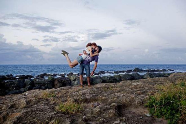 Brison et Banks, 31 et 32 ans, sont un jeune couple d’amoureux et parfaitement heureux ensemble. Tout commence il y a quatre ans, lorsqu’un ami les photographie dans une position qu’ils adorent. Depuis, les amoureux reproduisent la même pose sur toutes leurs photos de vacances.