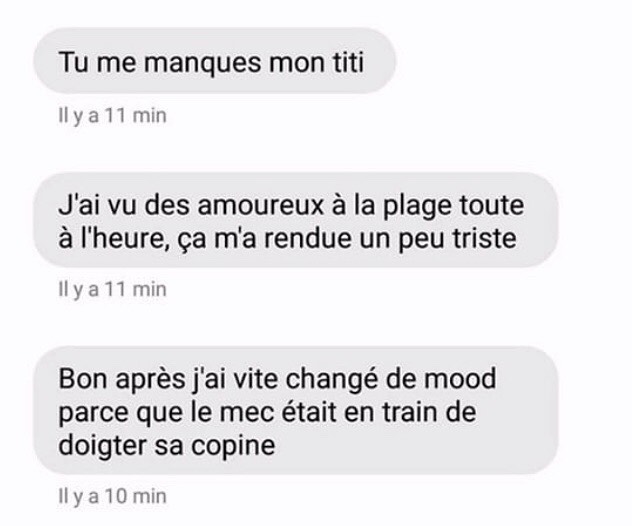 TDN > Lifestyle Ex relou : les 50 pires messages envoyés par nos exs ! Publié par Elsa Fanjul le 09 Avr 2024 à 14:04 Suivez nous sur Google News Partagez cet article Ton ex en vacances au Cap d’Agde Page précédente Laissez un commentaire Votre adresse e-mail ne sera pas publiée. Les champs obligatoires sont indiqués avec * Votre commentaire * Votre pseudo * Votre adresse e-mail * Cliquez ici pour commenter