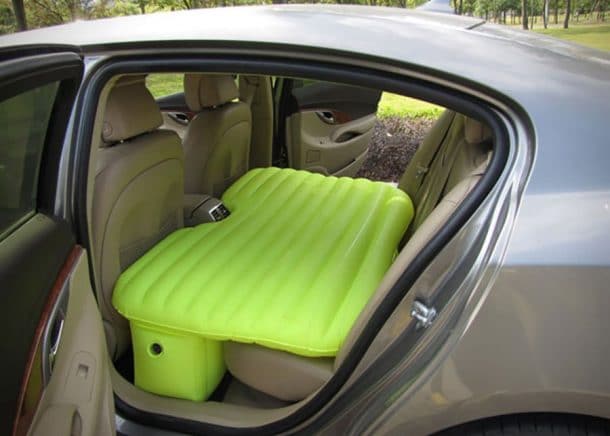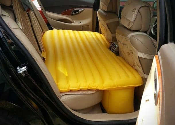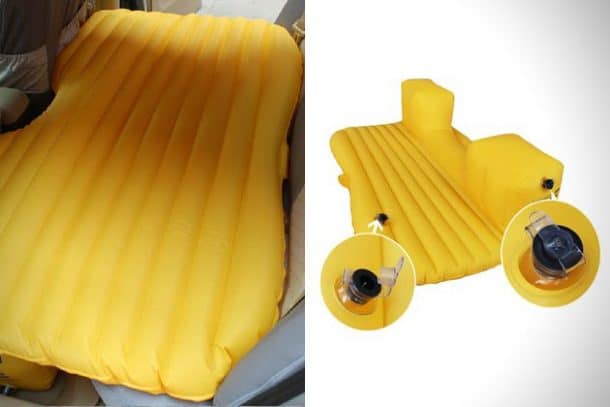 Notez cependant que ce matelas gonflable, qui ne m’a pas l’air des plus solides, coûte tout de même 100 euros. Mais il est doté d’une pompe électrique de 12 volts qui vous permet de gonfler le truc en un temps record. Il s’adapte à pas mal de modèles de véhicule, ce qui est relativement pratique. Par contre dans la Twingo, on oublie. Encore que, c’est à tester. Quoi qu’il en soit, je trouve cette invention vraiment géniale. C’est tout con, mais il suffisait d’y penser. C’est l’idéal si vous êtes du genre à partir en roadtrip sans vouloir dépenser de l’argent pour vous poser dans un hôtel miteux. Alors, qui dit mieux ?