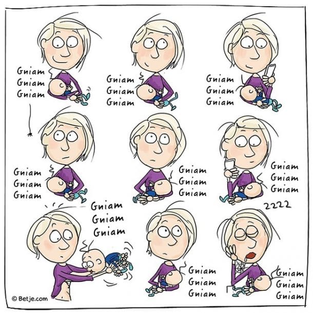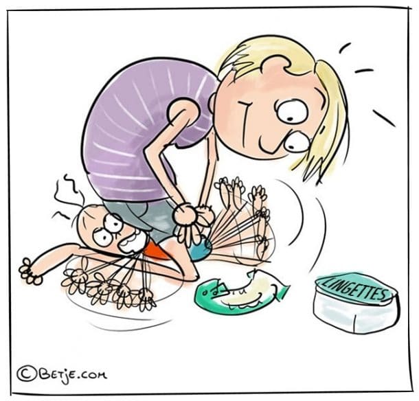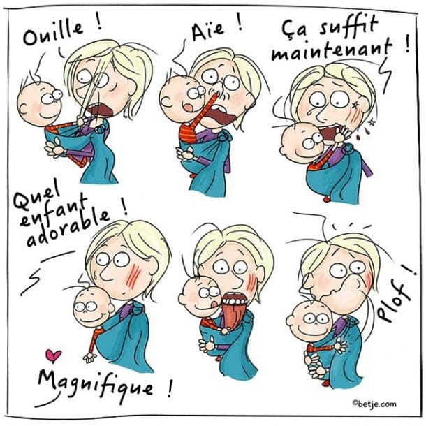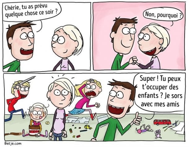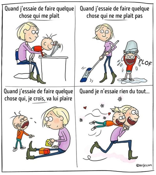 Vous allez découvrir ici, en quelques illustrations, ce qu’est le quotidien de Liesbeth. Sa petite famille, ses petits ennuis, son boulot, mais également ses petits bonheurs. Car il y en a, beaucoup, et elle ne les cache pas. Ses BD sont géniales, et à travers chaque dessin, elle amène les lecteurs à se poser plein de questions. À partager leurs expériences de parents. Elle se pose elle-même beaucoup de questions. Et vous l’aurez compris, c’est tout simplement drôle. On vous laisse découvrir le travail de Liesbeth Ton via ces quelques dessins. Et n’oubliez pas de nous dire ce que vous en pensez.