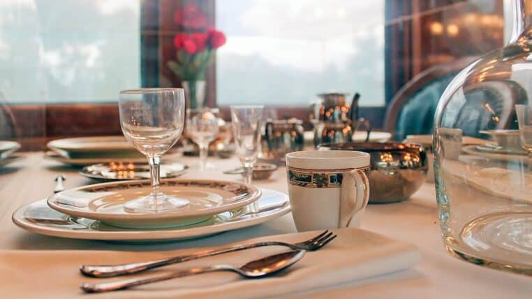 Le piège, avec les pastels, c’est de basculer dans une table trop “bonbon”. Pour éviter ça, la solution la plus simple est de garder une base neutre. Une vaisselle blanche, des verres transparents et des couverts inox créent un cadre calme. À partir de là, un seul élément pastel prend déjà de l’importance. Ensuite, on peut ajouter la texture. Le coton de la nappe apporte une douceur “maison”, et les rayures des sets remettent un peu de rythme.