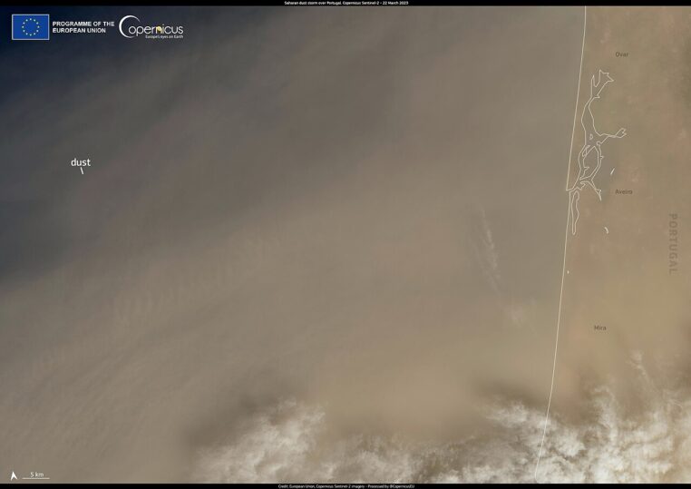 Sur le Portugal, l’IPMA décrit Regina comme une dépression s’inscrivant dans une vaste zone dépressionnaire centrée plus au sud, avec une évolution susceptible d’alimenter des épisodes de pluie et d’averses, parfois accompagnées d’orage. L’institut évoque aussi un point à surveiller de près : le transport de poussières sahariennes en suspension jusqu’aux alentours du 4 mars, ce qui peut favoriser des “pluies de boue” si des précipitations se produisent au même moment.