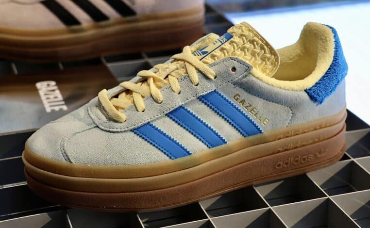 Si cette couleur fonctionne aussi bien, c’est parce qu’elle tombe au bon moment sur des familles de baskets déjà très installées. D’abord les silhouettes “terrace”, très présentes depuis plusieurs saisons. La Gazelle, la Samba ou la Campus restent des références fortes. Les pages officielles d’adidas montrent d’ailleurs que la Gazelle continue d’exister dans de nombreuses déclinaisons, preuve que le modèle reste central dans l’offre lifestyle de la marque. Sur ces formes fines, le bleu clair donne immédiatement une lecture rétro, propre et portable.