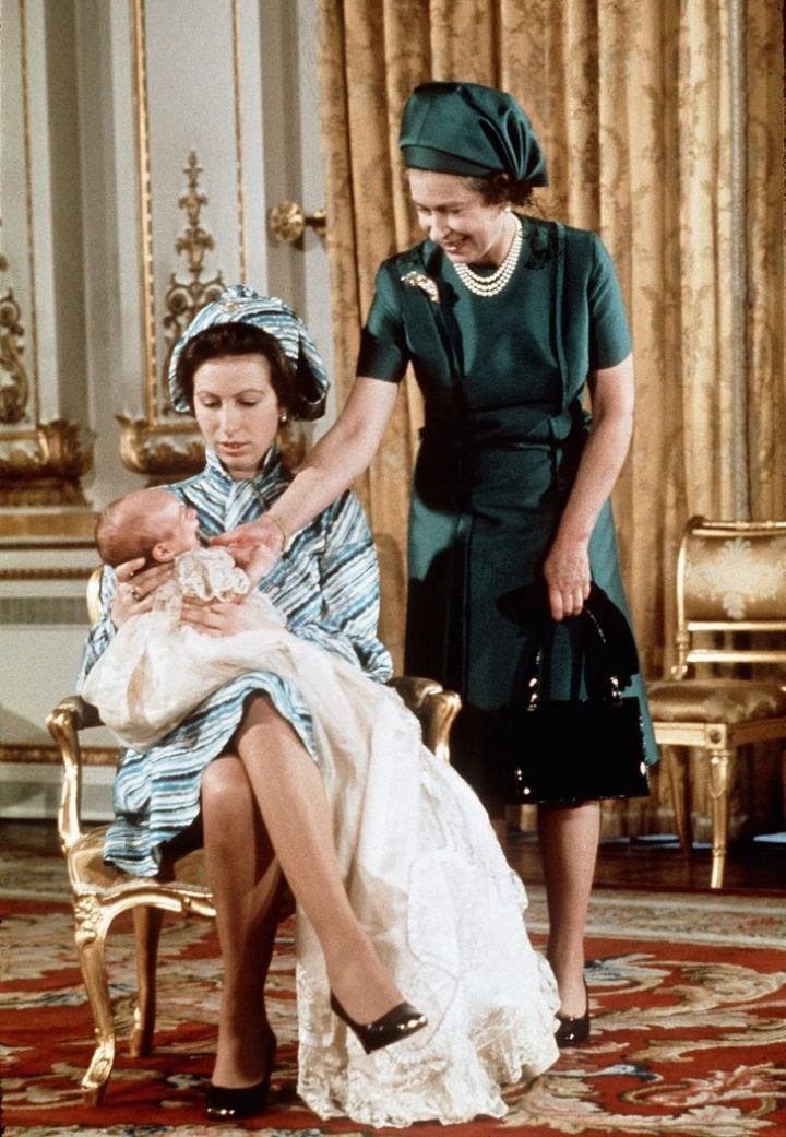La Reine, sa fille Anne, et son premier petit-fils Peter Philips.