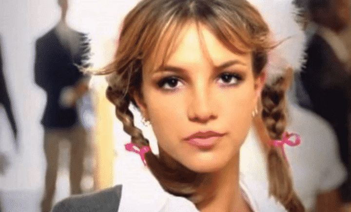 Ici, Britney Spears dans Baby one more time. De 1998 à 2000, elle arbore un look de petite fille sage et joue de cette image