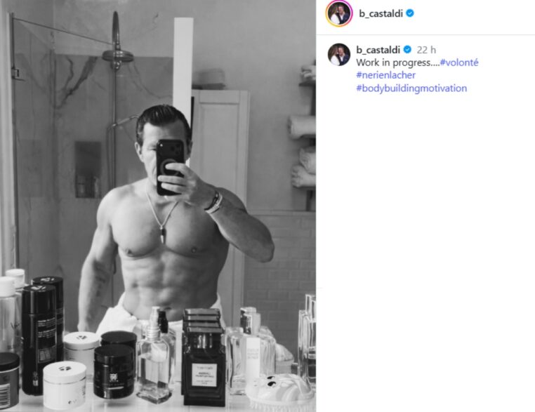 Incapable de s’arrêter en si bon chemin, Benjamin Castaldi peut être fier de ses progrès. Preuve étant, à peine publiée, cette photo de lui dans sa salle de bains a provoqué un tsunami médiatique. Dans un premier temps, tous ses camarades chroniqueurs ont admiré sa belle silhouette. Ensuite, quelques jaloux ont remis en cause le bien fondé de sa démarche. Peu importe, le petit-fils de Simone Signoret est enfin bien dans sa peau et ses baskets !