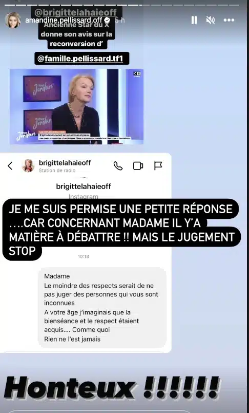 Amandine Pellissard ne s’est pas laissé faire et a répondu à l’animatrice comme elle l’a dévoilé en story.