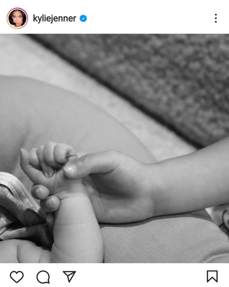 Ce lundi 7 février 2022, Kylie Jenner a posté un cliché sur Instagram qui a instantanément suscité des milliers de réactions. La femme d’affaires a publié une photo où on peut voir la main de sa fille ainée Stormi, tenir le petit poignet d’un bébé. La publication est en noir et blanc et en description, la jeune maman a marqué : « 02/2/2022 » .