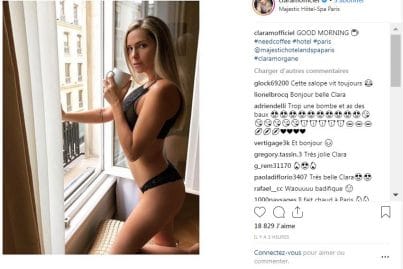 On le sait, Clara Morgane a pris goût à alimenter son compte Instagram de photos sexy. La belle blonde sait comment s’y prendre pour réveiller quotidiennement les internautes et leur faire tourner la tête. Et ce jeudi 6 décembre, la starlette a une nouvelle fois enflammé la Toile avec un cliché sensuel et mettant en valeur ses formes magnifiques. Clara Morgane prend la pause sur le rebord de la fenêtre de sa chambre au Majestic Hotel SPA à Paris. En sous-vêtements de dentelle noire, une tasse de café à la main, un genou posé sur un coussin, l’ancienne actrice porno est tout simplement sublime. Elle fixe l’objectif avec un regard de braise et a écrit en légende de sa photo : « GOOD MORNING. #needcoffee#hotel#Paris@majestichotelandspaparis#claramorgane ». Une photo sexy qui n’a pas manqué de faire sensation auprès des milliers d’internautes qui la suivent. D’ailleurs ce cliché tout en sensualité a récolté pas moins de 18 829 « j’aime » en seulement trois heures. Et les commentaires élogieux sont également bien présents : « Très jolie Clara », « Toujours une bombe cette Clara Morgane », « Il fait chaud à Paris », « Wahouuuu magnifique! ».