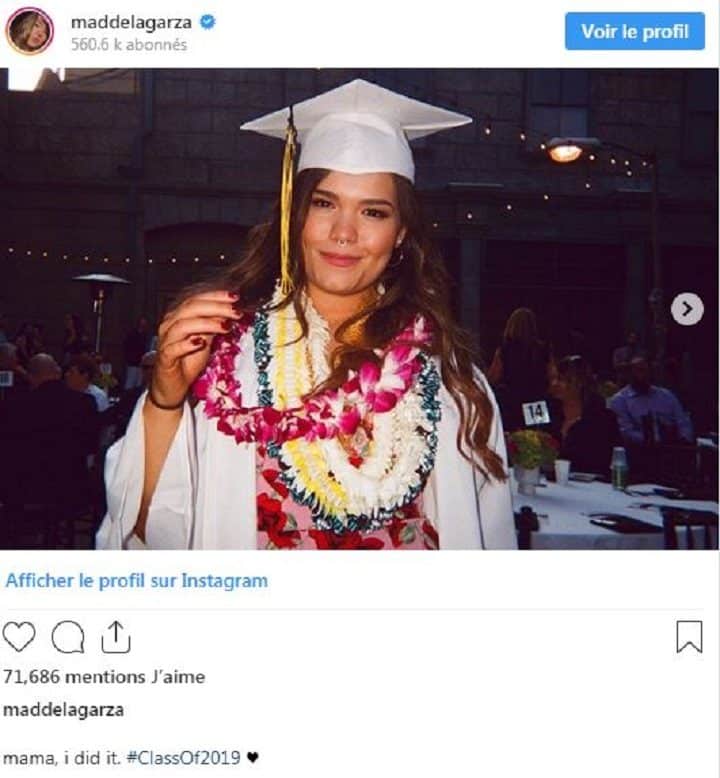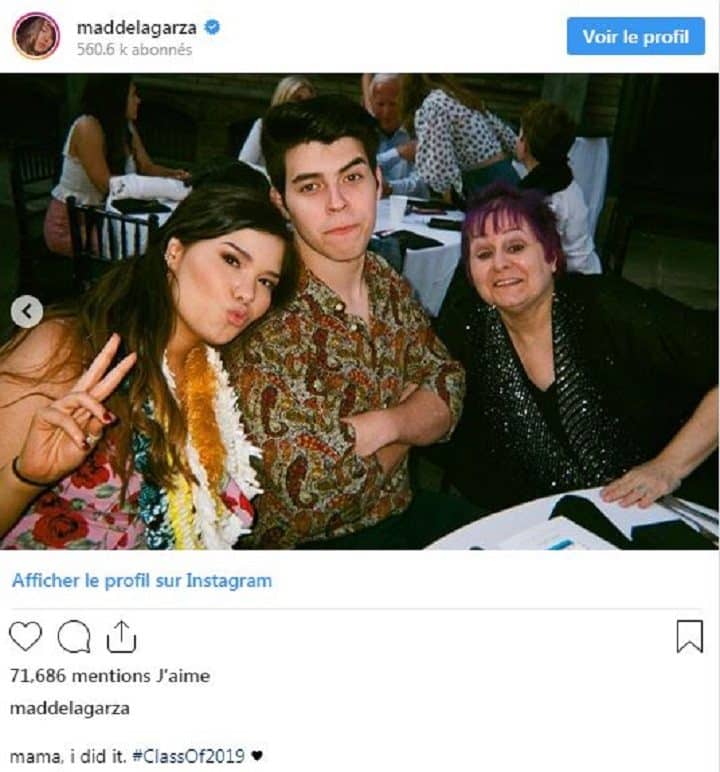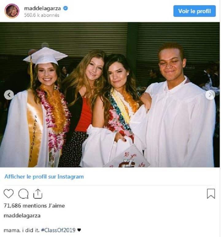Très contente d’être parvenue à la fin de ses études, nous découvrons donc Madison De La Garza alias Juanita en train de faire la fête. En légende, elle écrit “Mama, I dit it.” (“maman, je l’ai fait”) et s’entoure de ses amis mais également, de sa famille. Même la chanteuse Demi Lovato qui est sa demi soeur vient faire la fête !