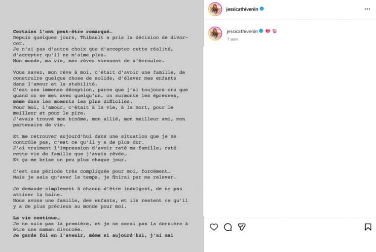 Le 23 octobre dernier, Thibault Garcia a dressé un bilan sans appel. Même s’il sait que c’est la fin, il a tenu à remercier Jessica Thivenin pour toutes leurs « années de bonheur et d’aventures vécues main dans la main.» D’ailleurs, il en profite pour lui « souhaiter sincèrement tout le bonheur du monde pour la suite. » Des souvenirs avec elle, il en a à la pelle !