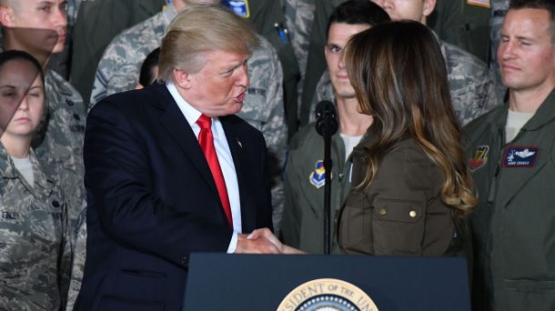 Mais où va-t-il chercher toute cette inspiration ? Et jusqu’où le Président des États-Unis peut-il aller en terme d’affection envers sa compagne devant toute la Nation ? Une question que ne s’est probablement pas posée Donald Trump le 15 septembre 2017 dernier. Et pour cause, lui et son épouse se trouvaient alors dans le Maryland. Melania Trump venait tout juste d’introduire son mari à la Joint Base Andrews avec un petit discours. Et il l’a remerciée avec une poignée de main.