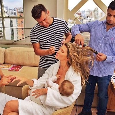 Un drôle de cliché qu’elle a posté avec pour seul message Que ferais-je sans cette équipe magnifique après un vol de 15 heures et seulement trois heures de sommeil?. Peut-être espérait-elle que personne ne remarquerait que sa petite Vivian tétait tranquillement… Mais il est davantage probable que Gisèle Bundchen ne se soucie simplement pas de la question. En 2010, la top-model avait même déclaré : A mon avis, il devrait y avoir une loi obligeant les femmes à allaiter leur bébé pendant six mois. Sinon, jeunes mamans, vous le payerez tôt ou tard.