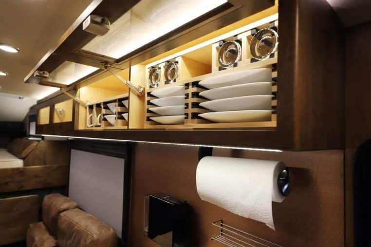 A l’intérieur, on peut également trouver une cave à vin, une machine à café Nespresso encastrée dans le mur, etc. Autant d’éléments lui garantissant un confort maximal, et ce, même en pleine forêt. Pour Jason Momoa, ce camping-car était son lieu de résidence lors des tournages. Une résidence qu’il préférait aux hôtels payés par les productions.