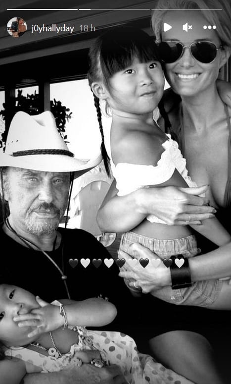 Sur cette photo, Joy n’est encore qu’un bébé alors que Jade, elle, ne doit pas avoir plus de deux ou trois ans. Laeticia apparait avec un grand sourire et sa paire de lunettes légendaire. Johnny, lui, est assis en portant Joy dans ses bras. Une photo de famille qui, à coup sûr, a dû rappeler de profonds souvenirs à la petite fille comme à sa maman qui voue son quotidien à faire briller la mémoire de son mari.