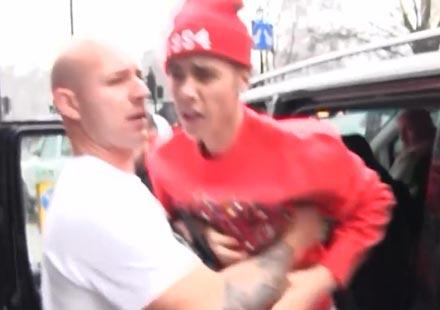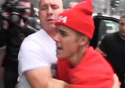 On peut même voir des clichés où un homme retient Justin de s’en prendre physiquement au photographe.