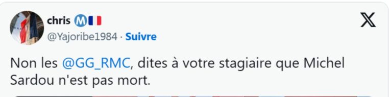 Comme l’atteste la capture écran ci-dessus, l’un des stagiaires de RMC a fait une immense bourde. En utilisant le conditionnel, il sous-entend que Michel Sardou nous a quittés. Or, c’est loin d’être le cas.