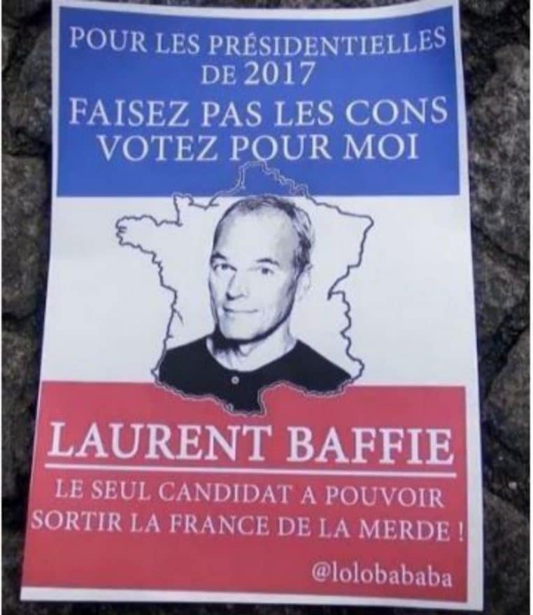 Au printemps 2017, il surprend ses fans en annonçant avoir recueilli les 500 signatures pour se présenter à l’élection présidentielle. Or, après le verdict des urnes, il décide de dévoiler les coulisses de sa (fausse) compagne dans un documentaire. Comme toujours, il en profite pour faire un joli pied de nez aux donneurs de leçon !