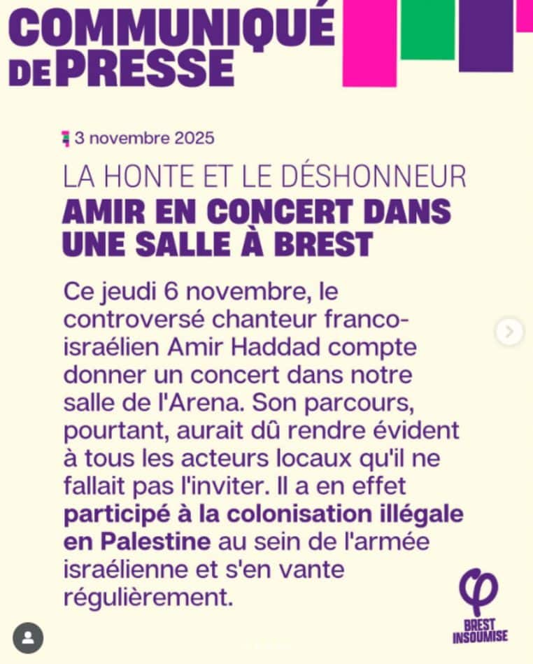 - 12/11/2025 à 15:24Nas93 est pas très inspiré ; il faut croire que la propagande de LFI fonctionne bien.Amir veut simplement faire son métier : chanter ; lui, il ne fait pas de propagande.LFI est devenu le premier parti antisémite et c'est une honte pour un parti qui se dit de gauche.