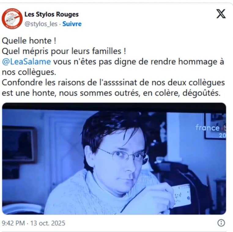 En évoquant ce sujet sensible, elle a interverti les causes du drame avec celles de l’attaque ayant également coûté la vie à Samuel Paty. Une confusion lourde de sens, tant ces événements sont encore douloureux et chargés d’émotion pour l’ensemble du monde enseignant. Cette erreur, dite publiquement devant des millions de téléspectateurs, a eu l’effet d’un véritable pavé dans la mare. Les réactions ont été immédiates, tranchées, et souvent très critiques.