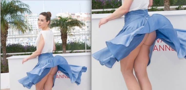Vent + jupe fluide, ça fait rarement bon ménage. Lors du Festival de Cannes en 2012, l’actrice Arta Dobroshi en a fait les frais et s’est retrouvée le derrière à l’air devant les photographes.