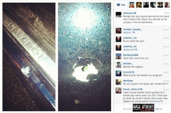 Aujourd’hui, La Fouine a posté d’étranges photos sur Instagram. Pourquoi étranges ? Car ces clichés sensés représenter les impacts de balles dans la voiture du rappeur révèlent une auto de la marque Peugeot. Alors que le chanteur avait affirmé s’être fait tirer dessus à bord d’une berline Allemande.