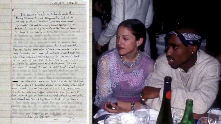 « J’ai longtemps attendu avant d’écrire ceci », commence Tupac, dans sa lettre qu’il adresse à sa petite-amie Madonna, alors qu’il est en prison, en juillet 1995. « Principalement parce que j’ai lutté pour avoir toutes les réponses et pour ne pas te laisser avec des questions sans réponses. » Clairement, le rappeur s’apprête à annoncer la décision de rompre avec elle. Tupac Shakur, de son vrai nom, avance alors des raisons surprenantes. « Pour toi, être vue en compagnie d’un homme noir ne mettrait aucunement ta carrière en cause. Au pire, ça te ferait passer pour bien plus ouverte et intéressante. Mais pour moi, (…) je ressens que pour mon image, je serai abandonné par la moitié des gens qui ont fait de moi ce que je suis. »