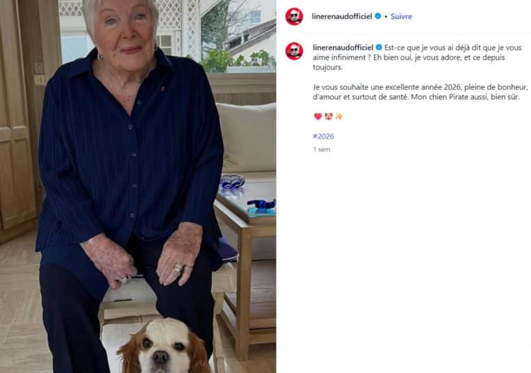 Quelques jours plus tard, elle a pris la pose avec son fidèle Pirate. Comme elle en a l’habitude, Line Renaud s’est adressée à ses abonnés avec tendresse et affection. « Est-ce que je vous ai déjà dit que je vous aime infiniment ? Eh bien oui, je vous adore, et ce depuis toujours. Je vous souhaite une excellente année 2026, pleine de bonheur, d’amour et surtout de santé. » .