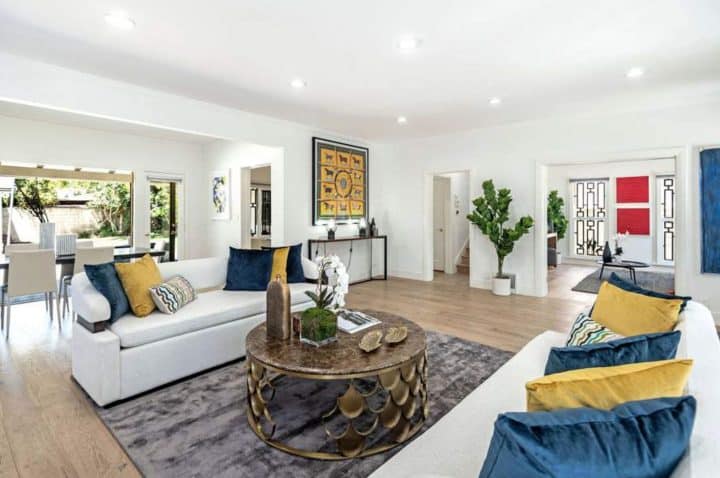 C’est en 2011 que Meghan Markle prend ses quartiers dans une superbe villa de Los Angeles, dans le quartier de Mid-Wilshire. Alors fraîchement mariée au producteur Trevor Engelson lors d’une incroyable cérémonie organisée en Jamaïque, la jeune femme et son mari décident de s’installer dans cette maison de 185 mètres carrés. Aujourd’hui divorcée et mariée au prince Harry, cette maison est mise en vente pour la coquette somme de 1,8 million de dollars, soit 1,6 million d’euros. Il faut dire que cette villa au style colonial est exceptionnelle puisqu’elle possède quatre chambres, trois salles de bain et une cheminée.