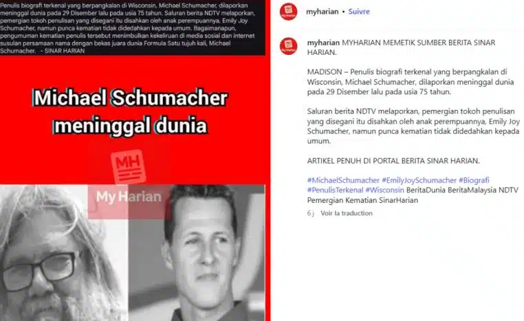 Quelques jours avant la fin de l’année 2025, Michael Schumacher a été au centre d’une énième polémique incroyable. Du reste, sur les réseaux sociaux, la rumeur s’est propagée comme une trainée de poudre. Lorsqu’une certaine Emily Joy a rendu hommage émouvant à son géniteur, la plupart des internautes ont réellement cru que la dernière heure du pilote était arrivée. Aussi, dans les commentaires, on perçoit nettement l’onde de choc. Comble de l’horreur, un détail assez glauque du calendrier a intrigué les fans. Et pour cause, cet homme est mort pile le jour anniversaire de l’accident du champion de Formule 1. De quoi s’emmêler les pinceaux…