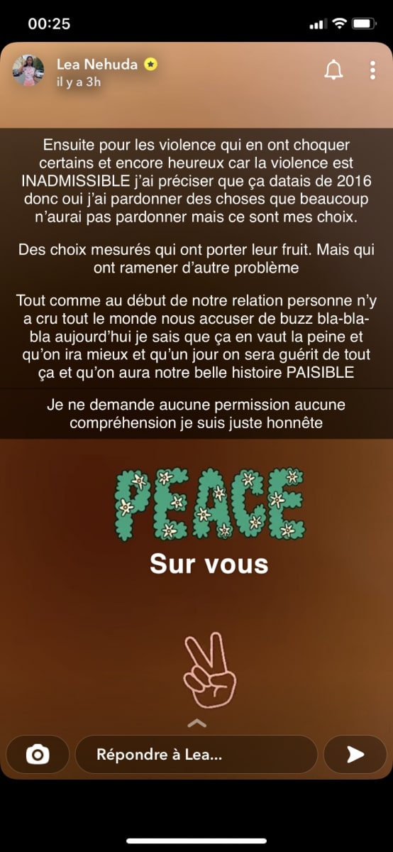 Mardi 30 juin 2021, Nehuda a donc posté un long message dans sa story Instagram afin d’officialiser son couple avec Ricardo. « Oui, j’ai souffert avec Ricardo. Mais pour des vraies choses, des vrais actes. Et temps que je l’aime et qu’il m’aime, je ne veux pas m’avouer vaincue pour une histoire qui, je veux le croire, sera un jour une belle éraflure« , a-t-elle notamment écrit. Dans son message, l’ancienne candidate de The Voice 4 précise également que tous les deux se font aider par des spécialistes pour surmonter leurs différences.
